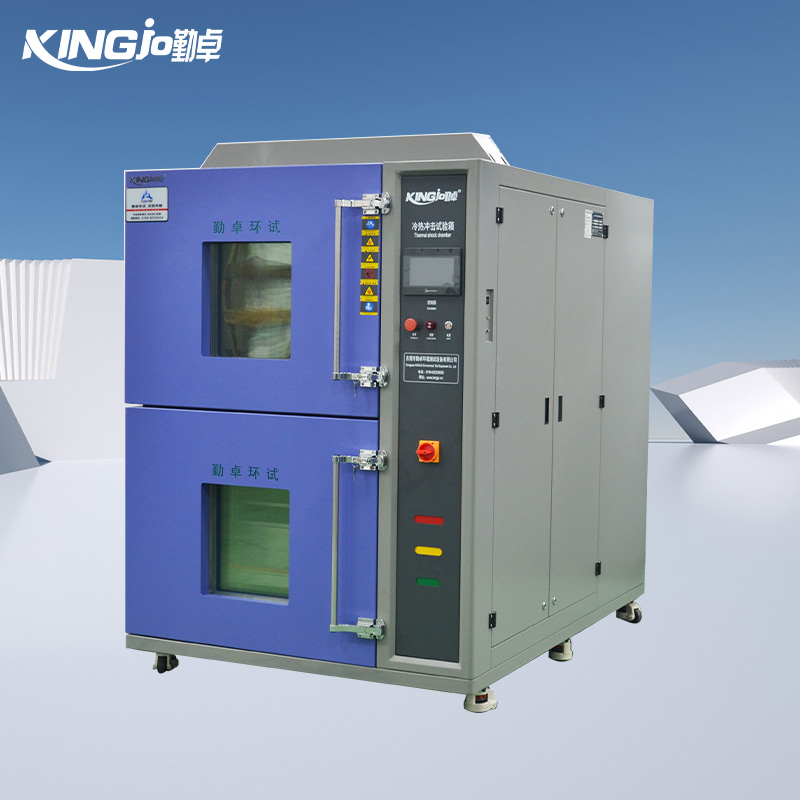 兩箱式冷熱沖擊試驗箱在高低溫室內切換轉移,采用吊籃移動式控制,轉換時間短符合國標要求,溫度恢復時間短,溫變速度快,設備整體結構緊湊,體積小,采用兩箱法,提高了工作室的溫度均勻性。